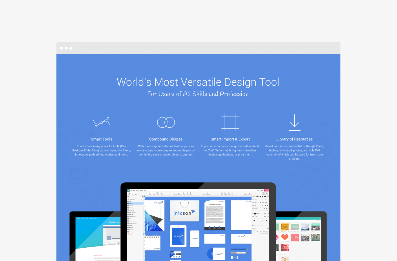 Gravit is a professional web-based design app that gives designers and non-designers the tools to create and share great looking work. It’s been featured in Forbes, TechCrunch, Smashing Magazine and countless other publications. It’s pretty cool.